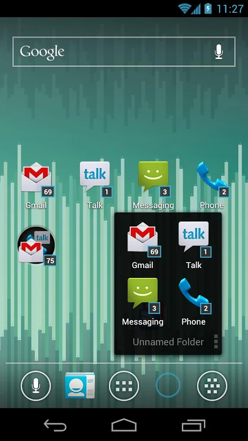 Never miss an email. Unread count badges for SMS, Missed calls and Gmail. Counts show in the dock, desktop, drawer and folders.